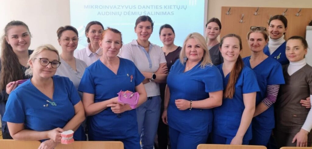 Kursuose dalyvavo KVK Burnos priežiūros katedros dėstytojai ir studentai, siekdami pagilinti praktines žinias apie šiuolaikinius minimaliai invazyvius gydymo metodus.