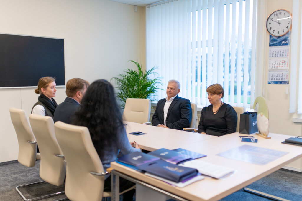 Svečius pasitiko Kolegijos direktorius dr. Remigijus Kinderis, direktoriaus pavaduotoja studijoms ir mokslui dr. Jurga Kučinskienė bei direktoriaus pavaduotoja strateginei plėtrai Jurgita Raišytė.
