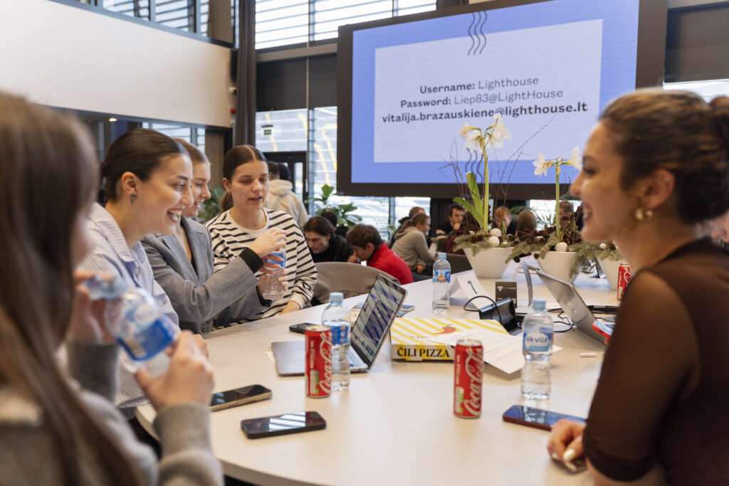Iš Klaipėdos valstybinės kolegijos pusės hakatone aktyviai dalyvavo Turizmo verslo ir Skaitmeninės rinkodaros studijų programų studentai. Ypač džiugu matyti, kad į renginį aktyviai įsitraukė ir mūsų tarptautiniai Turizmo verslo pirmakursiai, kurie drąsiai prisijungė prie komandų darbo ir kūrybinio proceso.