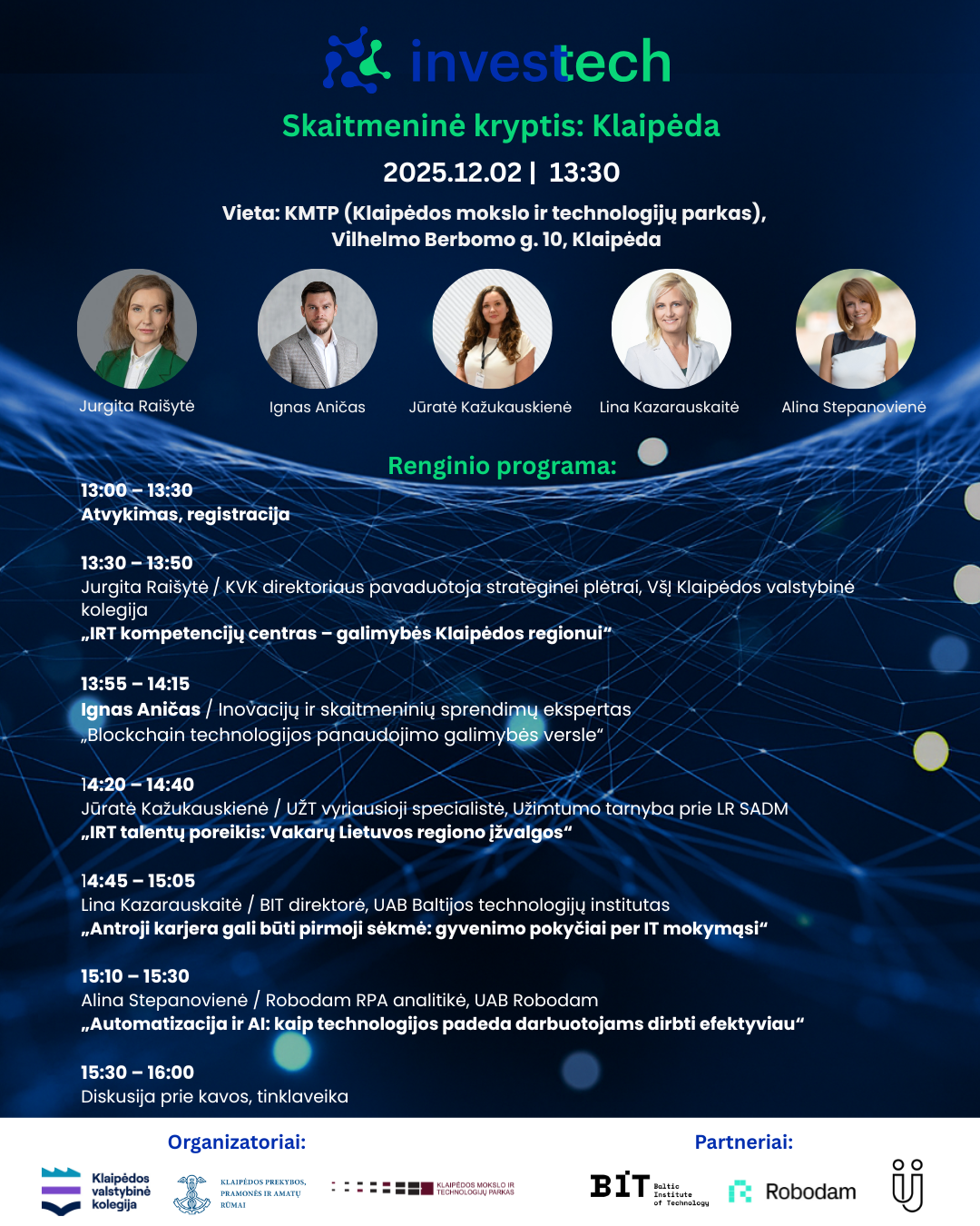 Tai ne tik informacinis, bet ir įkvepiantis susitikimas tiems, kurie nori suprasti, kur link juda skaitmeninė Klaipėda – ir kaip tapti šio judėjimo dalimi.