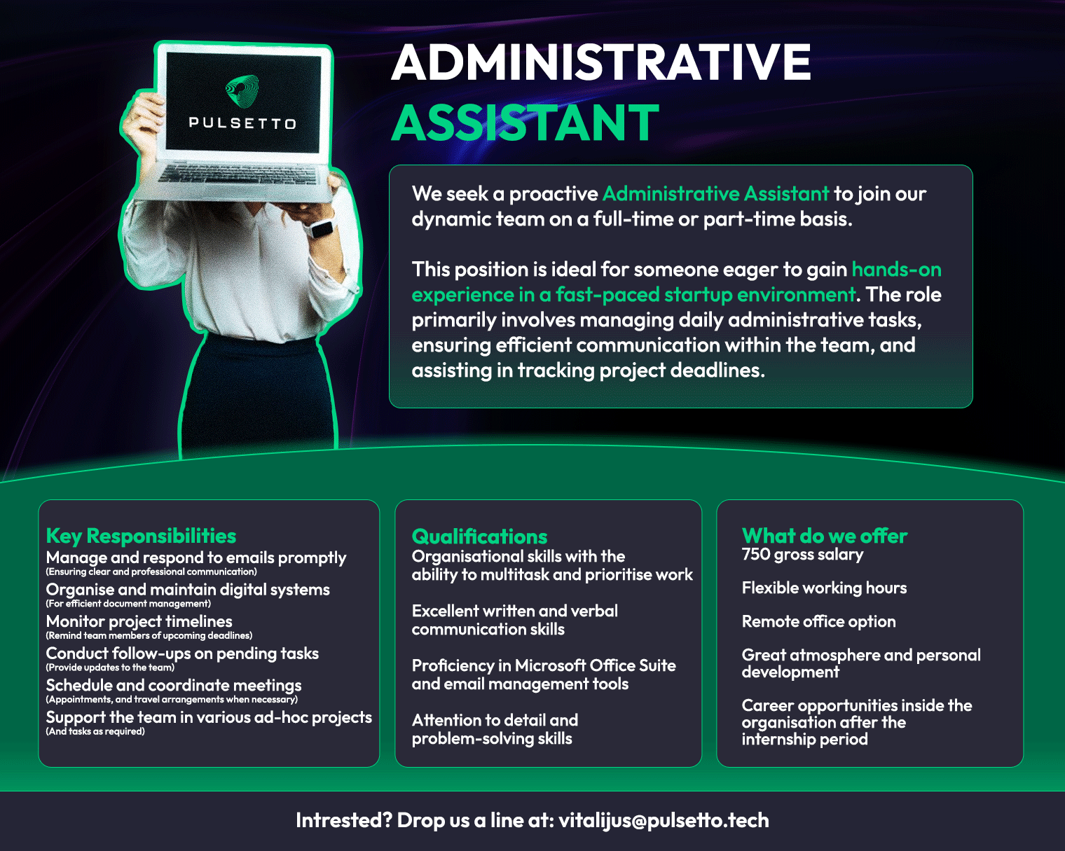 Praktikos pasiūlymas įmonėje „Pulsetto.tech”
