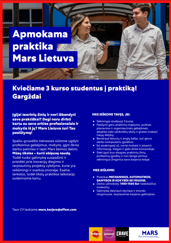 Praktikos pasiūlymas Mars Lietuva įmonėje