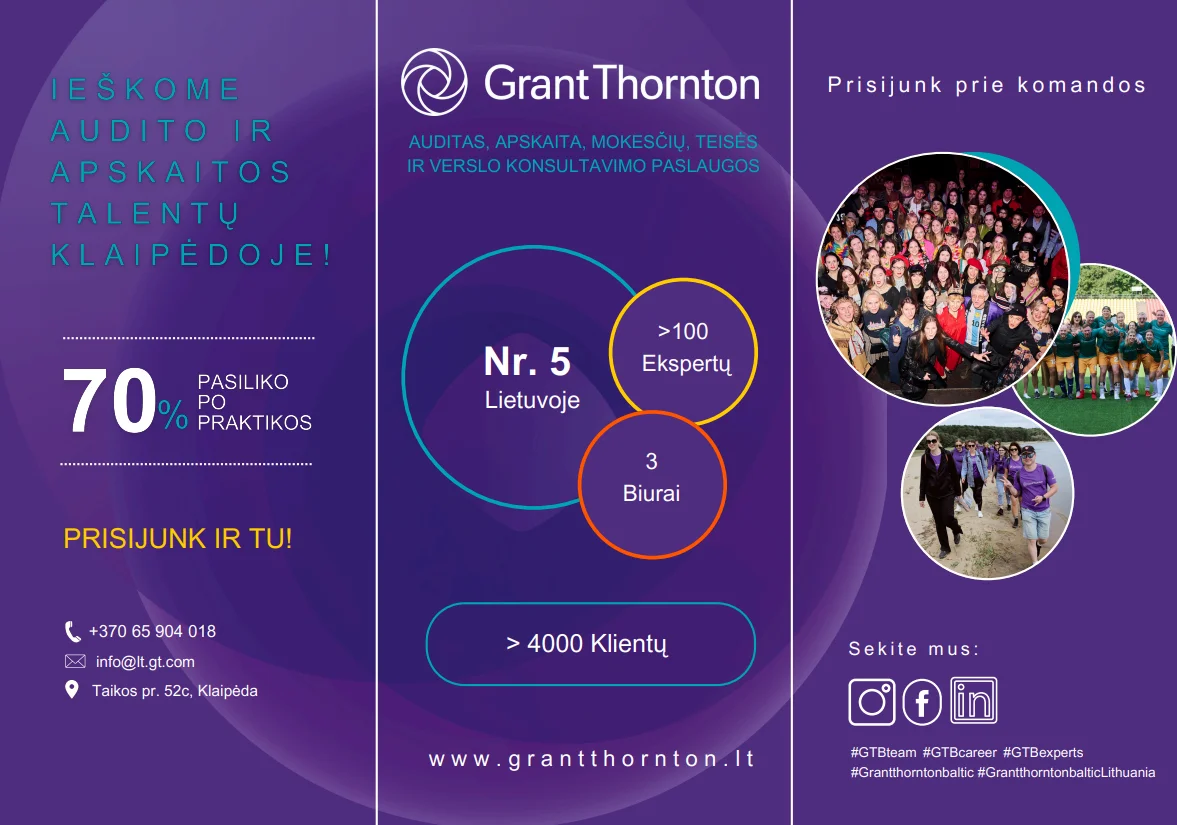 Praktikos pasiūlymas studentams įmonėje „Grant Thornton“